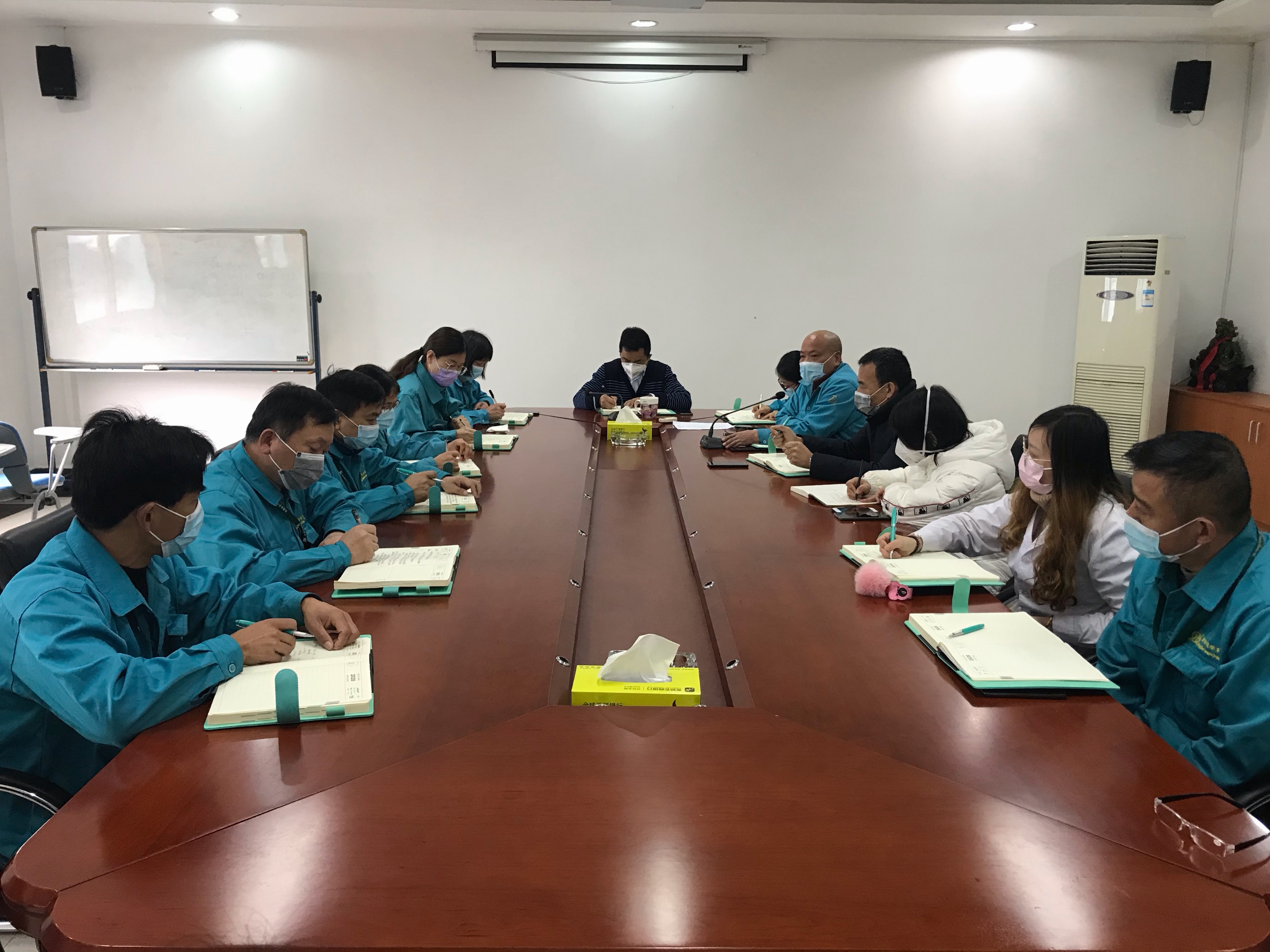 我公司工廠全體員工已於2月10日正式全麵複工(gōng)。鑒於(yú)當前新型冠狀病毒感染(rǎn)肺炎的疫情形勢依舊非常嚴峻,2月11日上午,公司總經理、副總經理及各部門經理召(zhào)開了複工工作會議,會議由總經理顧學峰主持。
